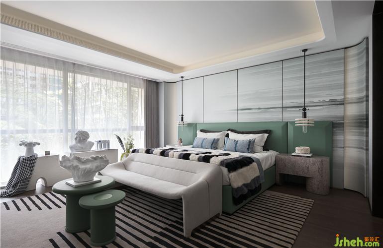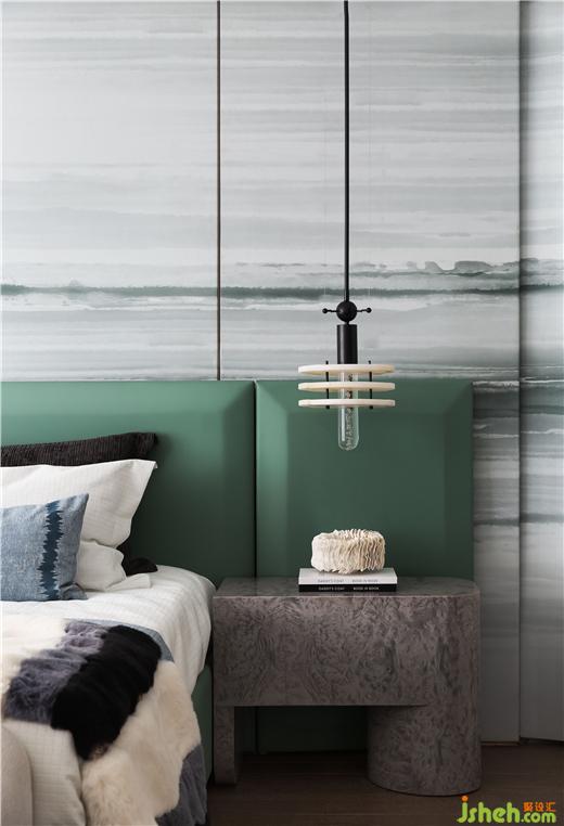 兒童房清新淡雅,水墨主背景墻作為視覺(jué)的延伸,樣板間設(shè)計(jì)搭配薄荷綠的軟裝,讓孩子在歲月的長(zhǎng)河里,感受生活的意趣。