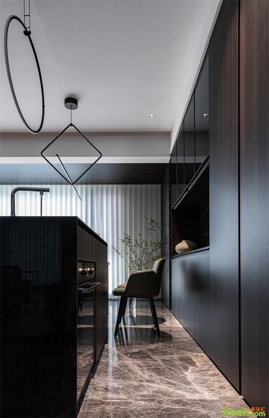 橫廳的設(shè)計使得空間交互性變得更好,尺度感也更加寬闊,超大的落地玻璃窗戶讓光線得以充足的照射進來,家裝設(shè)計西廚料理區(qū),島臺與餐桌平行排開 布局方便實用 與客廳良好的交互性更加豐富家庭生活的歡聲笑語