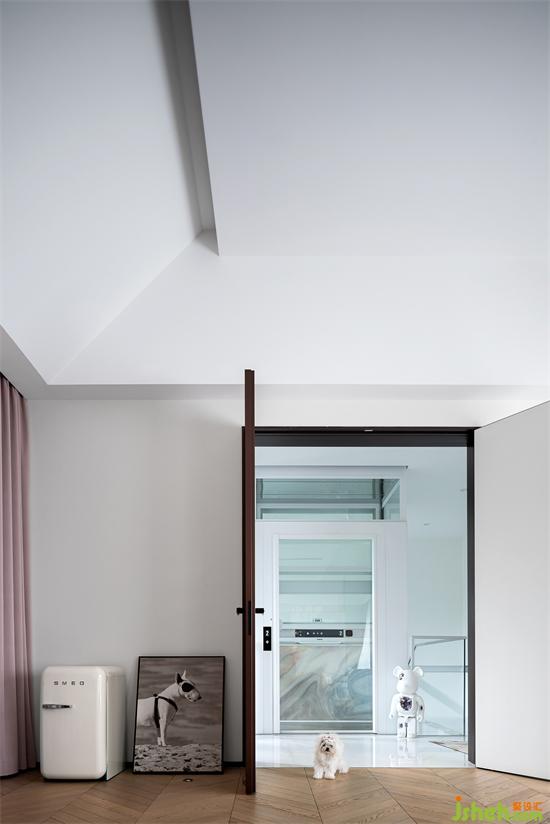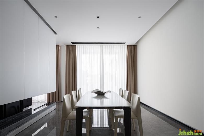 空間格局上我們把就餐區(qū)域與客廳會客區(qū)進行分離,半鏤空的隔斷吊柜既能有效保證功能區(qū)分,又可以滿足餐廳的收納需求。