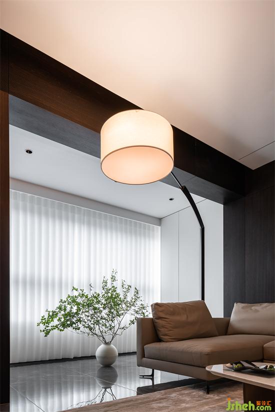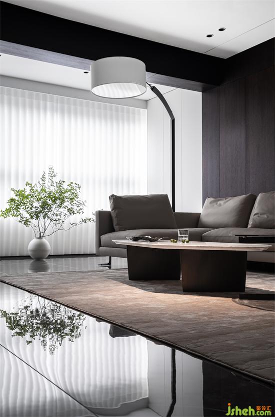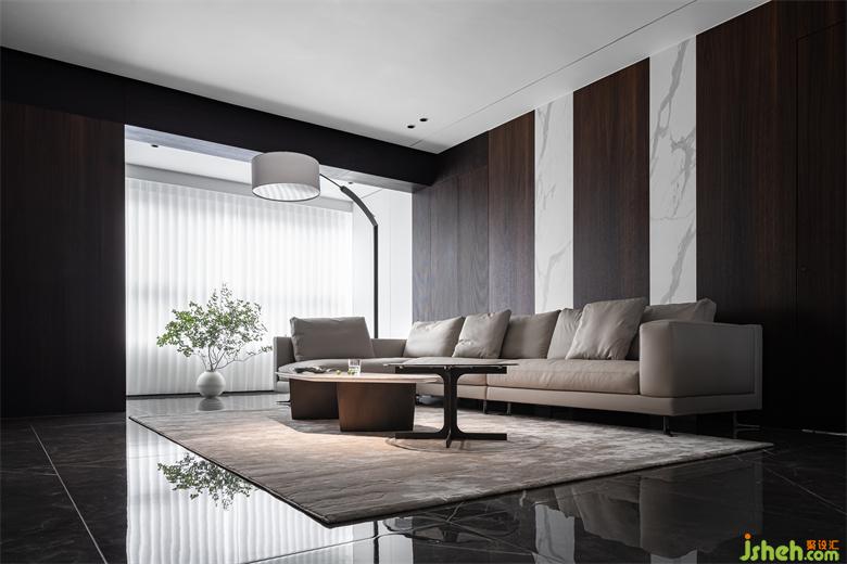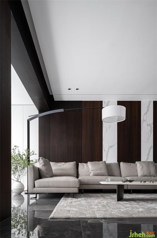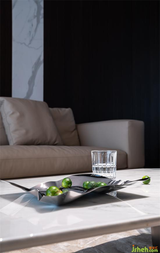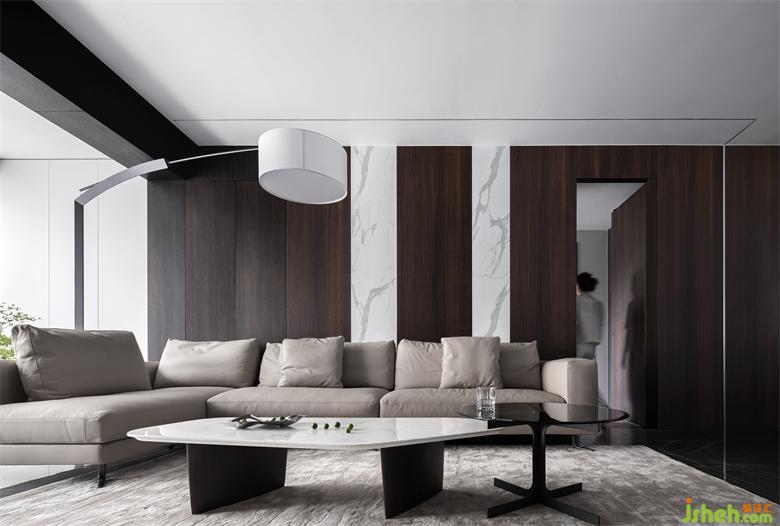 設(shè)計的都市感,黑白永遠(yuǎn)被追捧,極具質(zhì)感的煙熏橡木木皮把空間的基調(diào)做了鋪陳,山水樾瀾庭家裝設(shè)計白色的巖板點綴其中,無疑提升了材料的現(xiàn)代感,墻面延伸至頂面的線形燈光貫通了材料的鏈接關(guān)系。