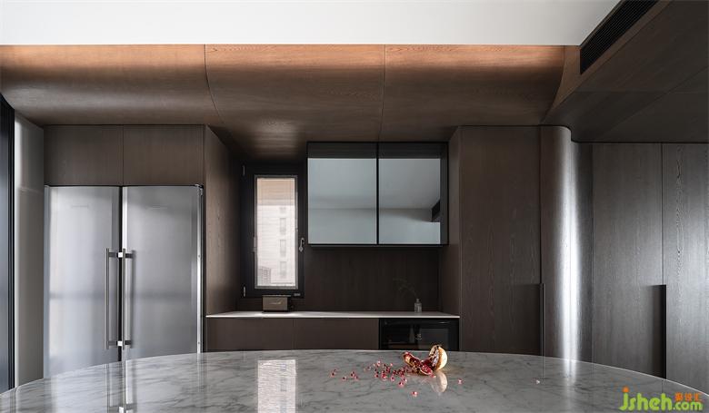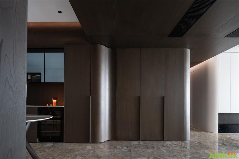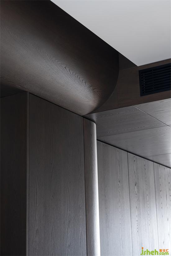 染色木皮的多樣可塑性得到了更多的表達(dá),各種角度的圓弧把木皮的造型感進(jìn)行了充分的體現(xiàn),瀾山瀾豪宅裝修設(shè)計(jì)打破木頭給人的僵硬感,讓空間在硬朗的基調(diào)中有些許柔和的居家溫馨感。