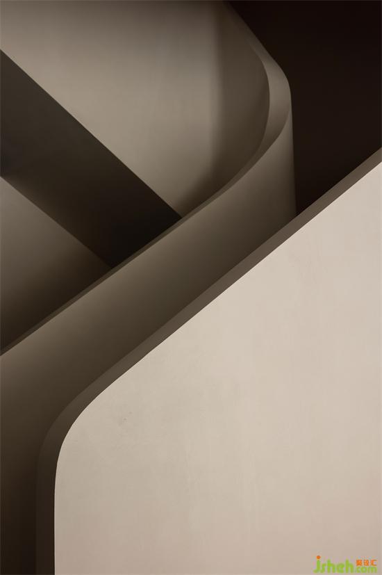 空間形態(tài)設(shè)立了許多對立元素,扭轉(zhuǎn)與平直、方正與圓弧、離散與聚合。景瑞無雙別墅設(shè)計諸多手段旨在打造一個具有對立感與趣味性的實驗空間。
