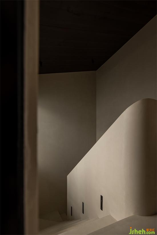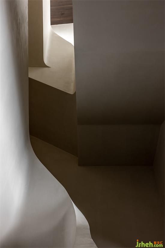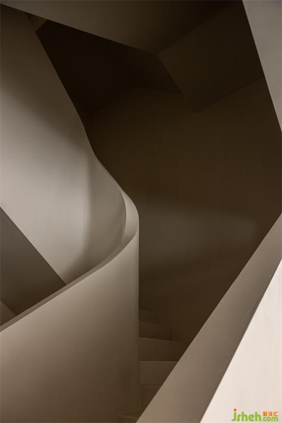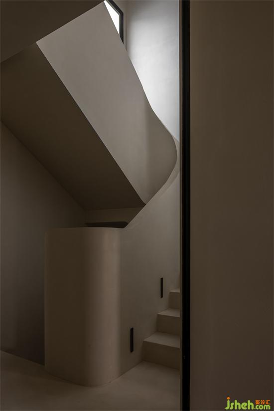 文首提到的這個建筑小品便是住宅的樓梯。景瑞無雙別墅設(shè)計原有的建筑樓梯狹窄閉塞,在進行土建擴改之后才形成具有一定舒適感的功能載體。