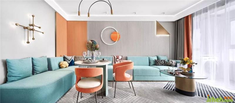 藍(lán)色的沙發(fā),清新而又出挑,讓整個空間更加廣闊,更有一眼就望見更多美好的可能。因橙色的點綴而更具生機,不需要鋪滿整個房間,只要一小色塊的躍動,便能為家?guī)硇迈r活力讓家在矜持和熱情中游走。它就像是還帶著香氣的新鮮橙果,充滿陽光的活力,又像是鮮榨的橙汁,給予你一天的精力。樣板房設(shè)計