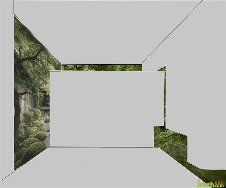 從中式園林中借來漏、透、遮擋手法,如置框取以虛景,如手捻長軸,一寸寸展開,畫面流動,漫步方窺得全景。