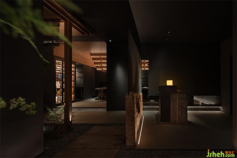 凡此種種,講究主體與客體之間反差帶來的美,如“煙生遙岸隱,月落半崖陰”,詩境中彼岸與明月何所見,只因煙生、涯陰。設(shè)計師運用光影手法,讓感性的美走進深邃的黑,空寂而深遠,如同在水墨中留以隱秘和留白,以表幽玄意境。