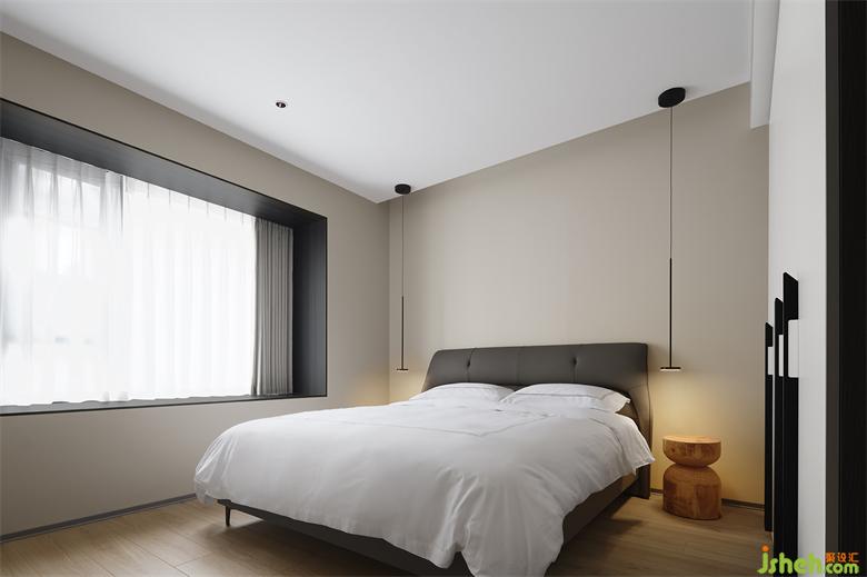 次臥設(shè)計凝練簡潔,良好的采光讓室內(nèi)舒適而自然,細膩柔軟的床品安撫著身心,家裝設(shè)計讓人在最輕松的狀態(tài)下感知生活。