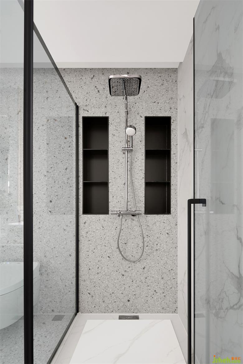 盥洗區(qū)、馬桶區(qū)和淋浴區(qū)三分離衛(wèi)生間提升空間實(shí)用性,每個功能相互獨(dú)立,互不打擾。家裝設(shè)計(jì)師在盥洗臺延用曲線元素,與公共空間的線條運(yùn)用相呼應(yīng),打造出一個干凈清爽且富有藝術(shù)美感的洗漱環(huán)境。