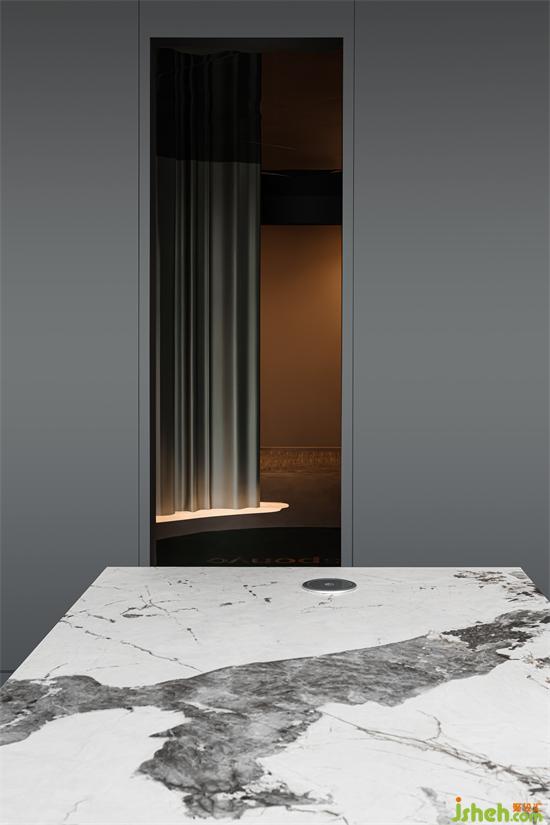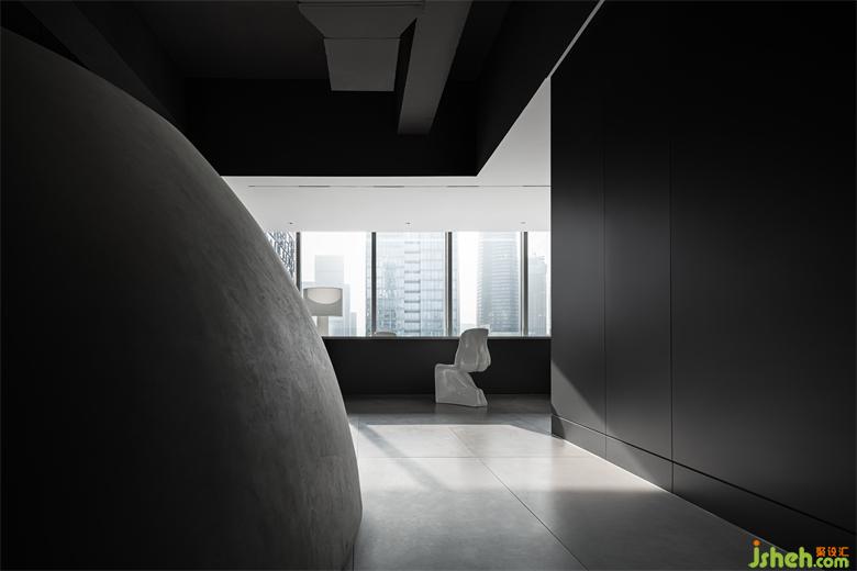 沙龍區(qū)的硬朗直線與公共辦公區(qū)域的優(yōu)雅弧線相結合,剛柔相濟,展現(xiàn)出幾何的藝術美感,辦公室設計使空間富于變化,實現(xiàn)了一種微妙的平衡。