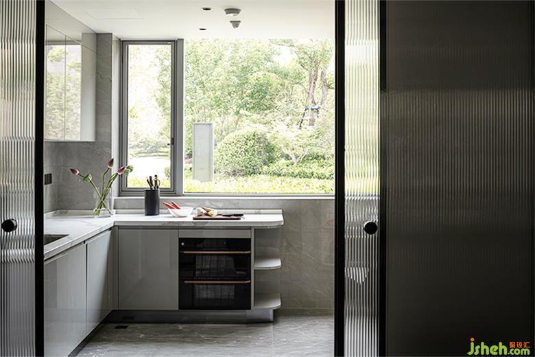廚房將之前相對(duì)狹小的空間以及外面利用率較低的吧臺(tái)區(qū)域改為了大中廚,別墅設(shè)計(jì)將原本進(jìn)出不便的設(shè)備房門,納入廚房之內(nèi),使進(jìn)出更為方便。