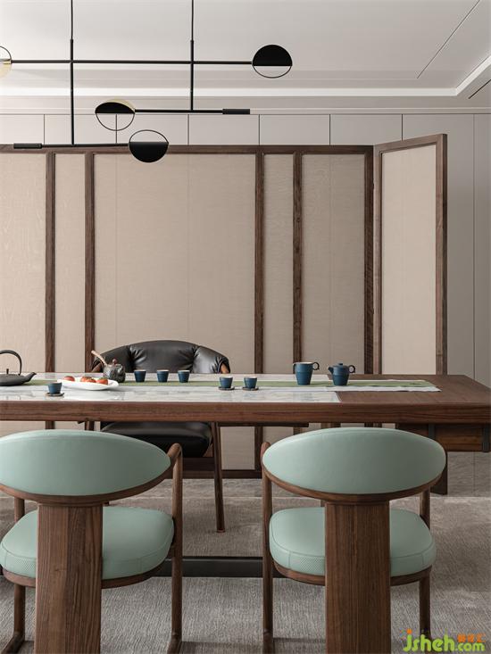典雅的茶室線條干凈利落,別具韻味??萆剿囊饩碃I(yíng)造,禪意十足,同時(shí)又與空間的自然主題一脈相承。