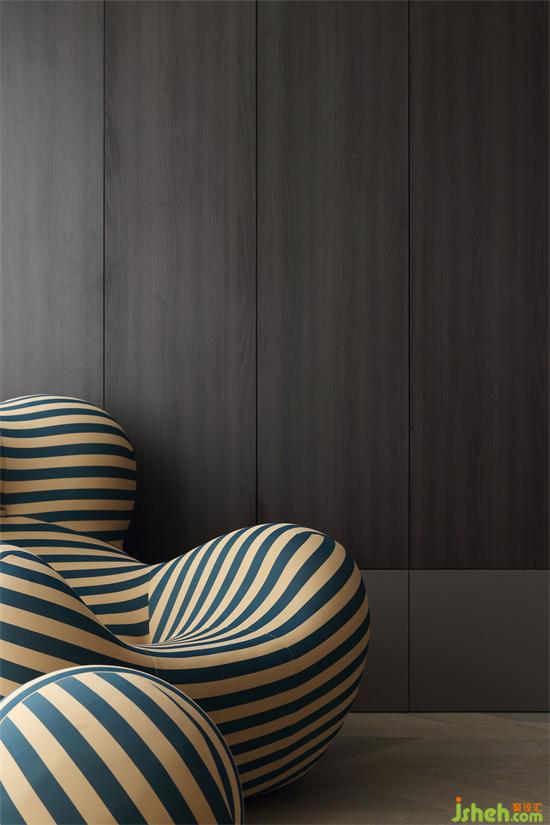木質材質中和了酷黑的冷感,為空間注入些許溫潤氣度。家裝設計豎向紋理設計,將空間的視覺層次變得更為豐富。