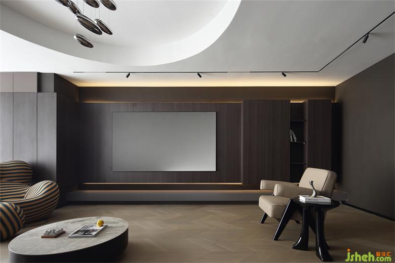 干練簡約的線條勾勒出空間開敞大氣的輪廓,家裝設計深色為主的色調,鋪陳出冷靜內斂、極具品位的空間氣場。