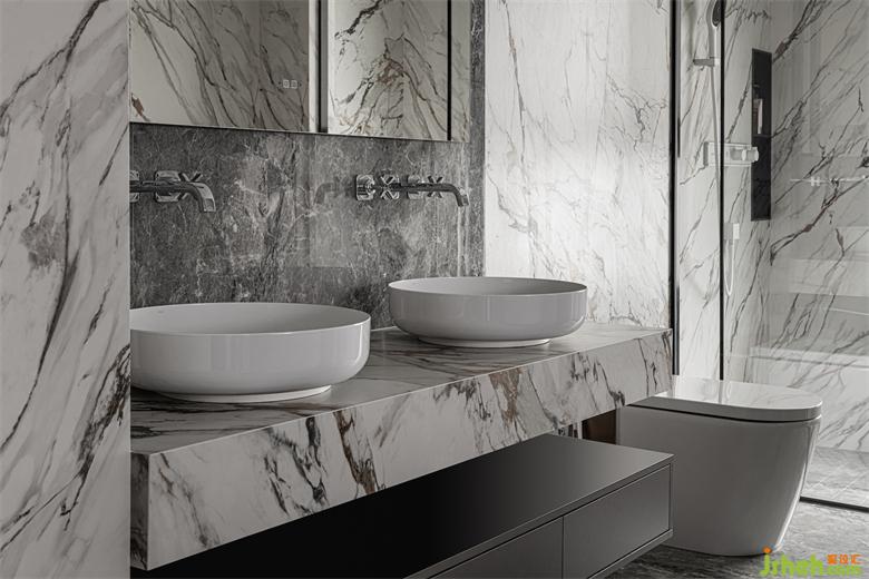 主衛(wèi)以經(jīng)典的白色為主色調(diào),流動(dòng)的紋路順暢自然,整個(gè)空間纖塵不染,潔凈有加。