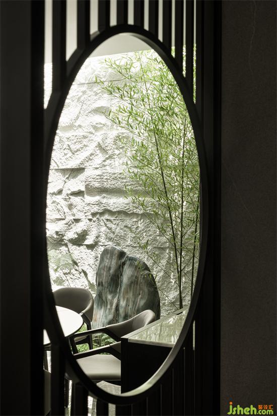 蘇東坡曾說“寧可食無肉,不可居無竹”,天井設(shè)置綠植造景,主餐廳在叢叢綠竹的掩映下,滿目清新,充滿生機(jī)。