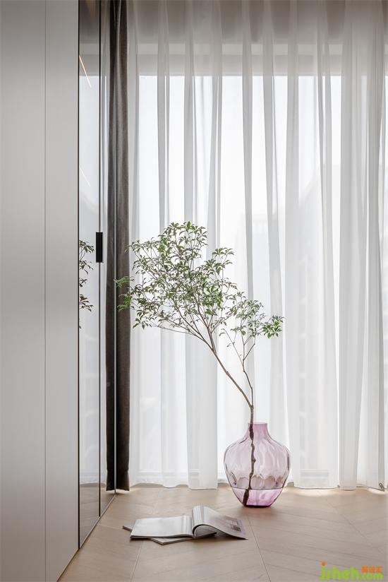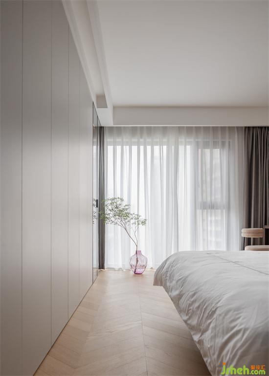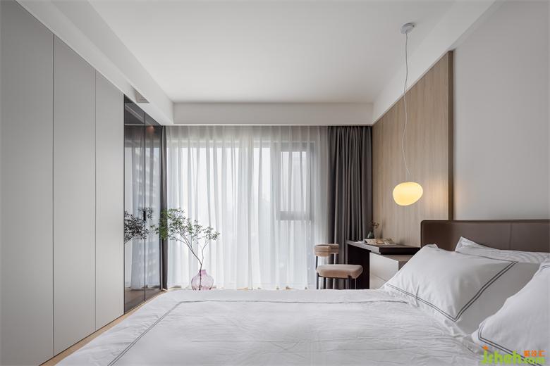 木質地板的溫潤,讓整個主臥空間顯得豐潤而有溫度。家裝設計簡潔利落的柜體收納,讓空間看起來整齊寬敞,給人帶來更多的放松之感。