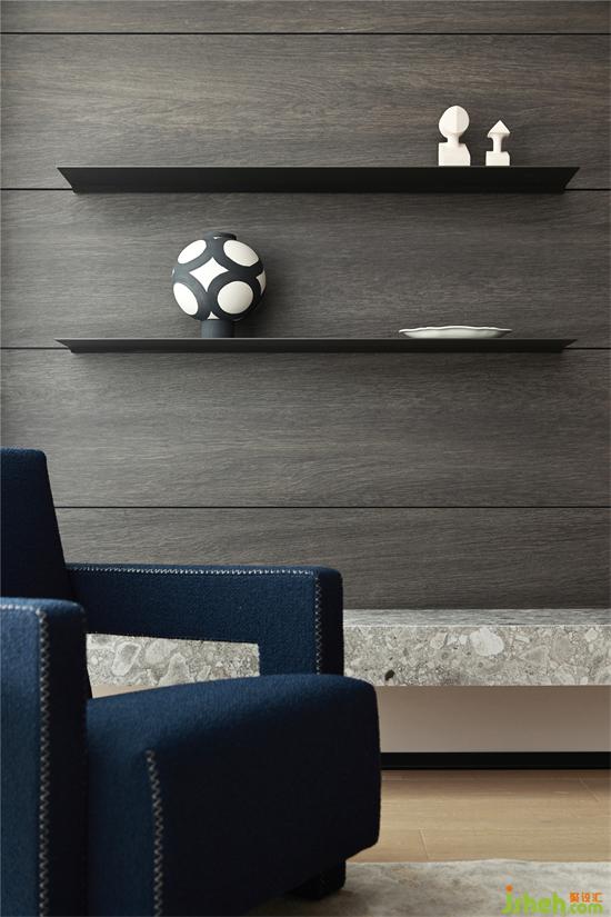 餐邊柜上的藝術(shù)版畫(huà)用斑駁的橙色為空間帶了一抹亮色,活潑生動(dòng),麓湖蕓臺(tái)漫躍層裝修設(shè)計(jì)中和了原有黑白空間的嚴(yán)肅感。隱形門(mén)的設(shè)置,讓整個(gè)空間看上去更加整潔干凈。
