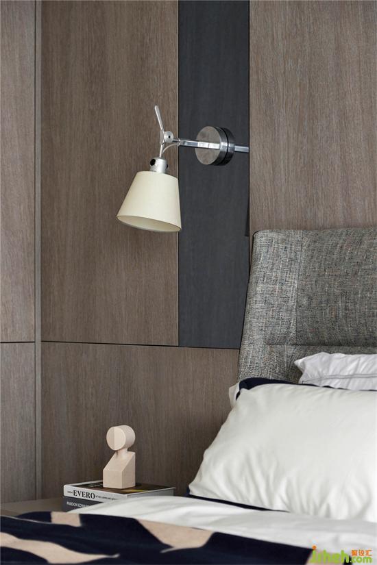 位于二樓的主臥是一個(gè)套房,便于居住者平日的生活起居。麓湖蕓臺(tái)漫躍層裝修設(shè)計(jì)深灰木質(zhì)墻面的裝飾,營(yíng)造出沉靜安穩(wěn)的睡眠環(huán)境,容易讓人安下心來(lái),卸下一整天的疲憊,沉浸在舒適的休憩之中。
