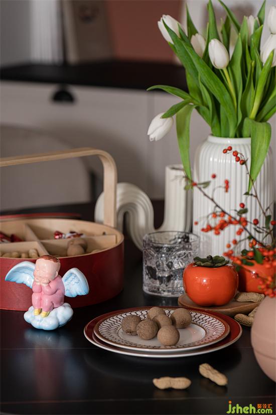 擁有小巧外觀的圓形臺燈,投下溫馨而昏黃的燈光,將整個臥室籠罩在寧謐的休憩氛圍之中。家裝設(shè)計清雅綻放的粉色花朵,畫框的亮眼橙色,都給室內(nèi)增加了不一樣的活力。