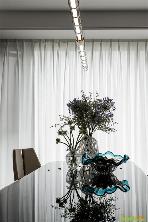 桌面裝點著瓶盞花枝,清新芬芳,家裝設(shè)計打造出自然而富有生機的用餐氛圍,別有一番清雅韻致。