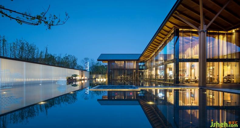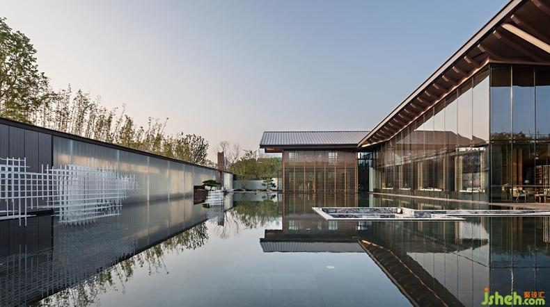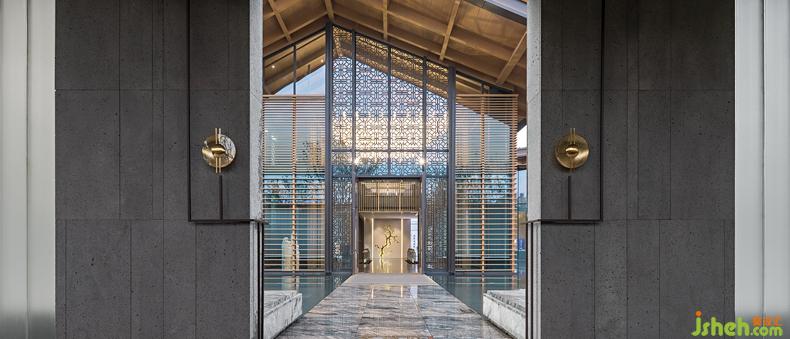Then you come into the transparent hazy corridor space, it is a penetration of the function in the physical sense, and it also undertake the void and reality in the spiritual world. You will be attracted to the ripping water and the refinement and rhyme revealed by history of Wuyue. The designer uses the green brick, odd stone, emerald bamboo and green pine, as well as elegant Chinese decoration, creating elegant and quiet atmosphere; different scenery and different felling, the architecture and the nature are making interaction with human in the space.