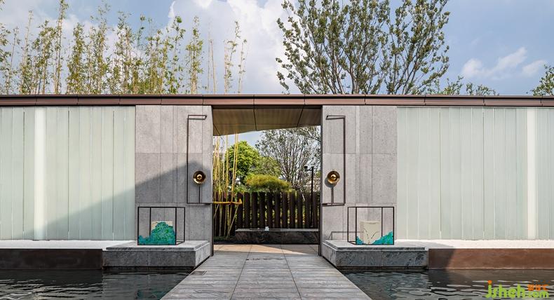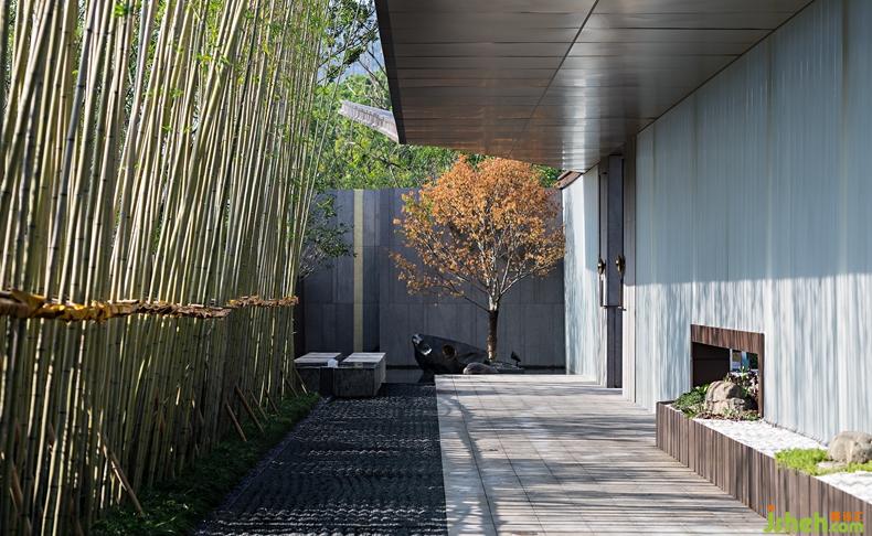 透明朦朧的連廊,是物理意義上功能的貫穿,也承載著精神世界里的虛實(shí)相生,讓人流連停駐下腳步的,是眼前的瀲滟水色,也有吳越地域歷史隱約透露出的意境情韻。青磚異石、翠竹青松、以及雅致的中式園林端景小品,營(yíng)造出典雅幽靜的氛圍,移步易景,情隨景生,建筑、自然與人隨處發(fā)生著互動(dòng)。