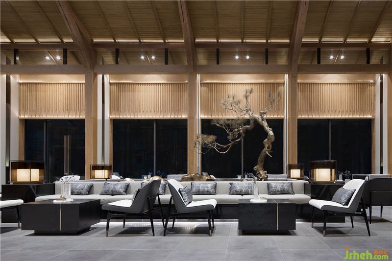 “通過(guò)大面積的玻璃幕墻觀看室外的景色,比在室外看自然景色有著更深刻的意義。”洽談區(qū)營(yíng)造了一處輕松、寫意的交流氛圍,落地窗將山色、樹影、輕霧盡收其中,沙發(fā)的陣列擺放讓空間有條不紊,穿插的藝術(shù)裝置則呼應(yīng)了園林景觀的山水意境,讓身處其間的人們感受到一份寧?kù)o的淡雅和沉淀的安然。裝修設(shè)計(jì)