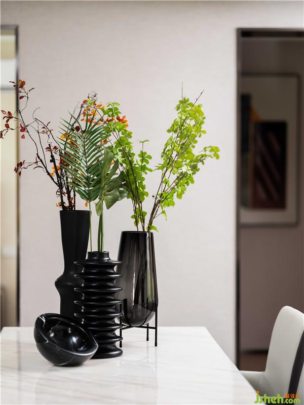 餐廳轉(zhuǎn)身就是廚房,設(shè)計(jì)師將它設(shè)置為半開放式,顯得獨(dú)立而又寬敞,同時讓廚房、餐廳、客廳連接在一起,使用每個空間的主人都有很好的聯(lián)系與互動。樣板房設(shè)計(jì)