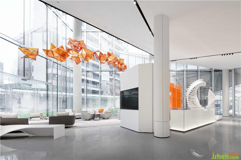 大面積玻璃幕墻構(gòu)建出通透的場(chǎng)域感,富于動(dòng)態(tài)、整潔靈活的室內(nèi)造型語(yǔ)言,以及橙與白的色彩搭配,成為吸引人們視覺的焦點(diǎn),傳遞出“萬(wàn)家燈火”、“楓橋夜泊”的歸家意境。。裝修公司