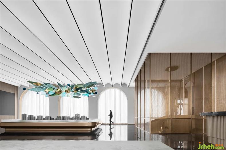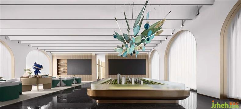 伴隨著光影流動(dòng)進(jìn)入二樓,沙盤(pán)區(qū)以通感的手法融匯感官與視覺(jué)的連通,實(shí)驗(yàn)性的重構(gòu)與延續(xù)。設(shè)計(jì)師受到自然世界生命的獨(dú)特性和復(fù)雜性的啟發(fā),運(yùn)用玻璃定制出與空間共生的燈光雕塑,室內(nèi)設(shè)計(jì)師它通過(guò)隨機(jī)性創(chuàng)造和諧的方式,將生命帶入室內(nèi),令空間飽含生命的活力與意志的自由。