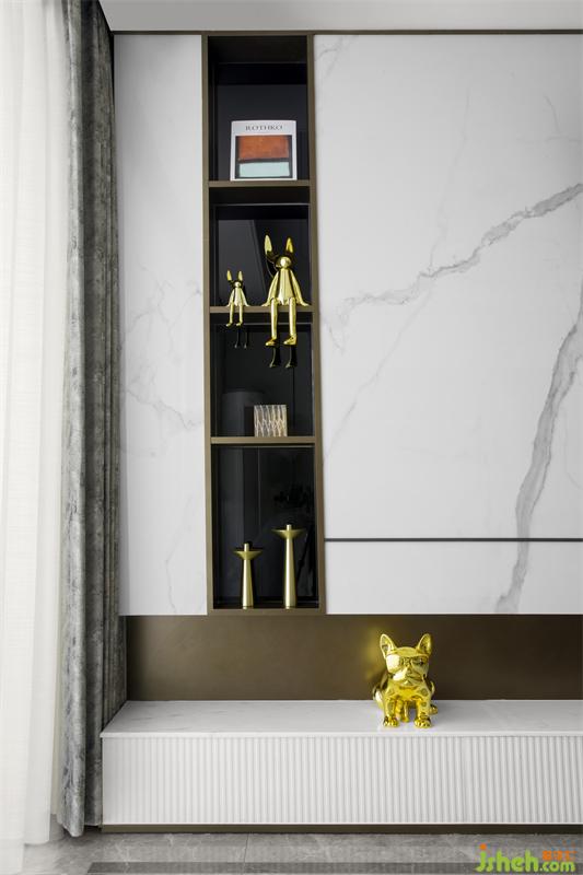 寥寥幾件金屬擺件,就能讓空間色彩對(duì)比更加鮮明。樣板房設(shè)計(jì)亦能從側(cè)面表現(xiàn)業(yè)主年輕而活潑的審美。