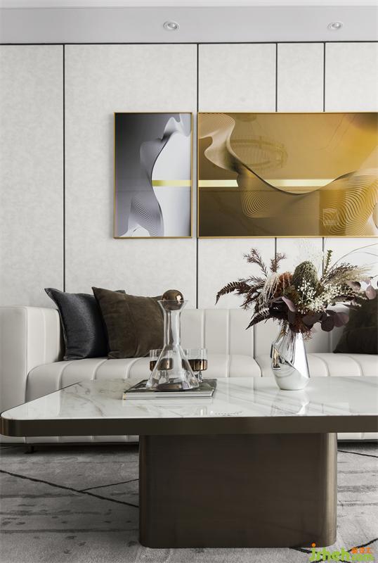 素雅輕奢的皮質(zhì)沙發(fā)、光澤柔和的大理石臺(tái)面、現(xiàn)代風(fēng)格濃厚的掛畫,樣板房設(shè)計(jì)串聯(lián)描摹出現(xiàn)代精致客廳空間的準(zhǔn)確畫像。