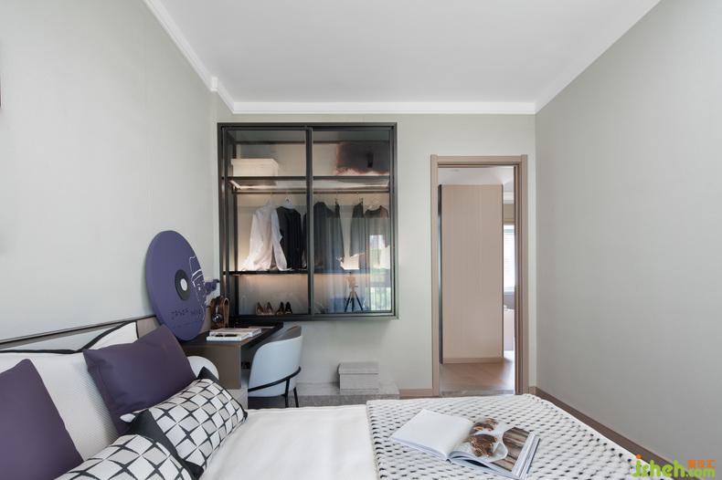 克制的設(shè)計(jì)配色之下,金屬色與玻璃的出現(xiàn)使得空間更有張力。