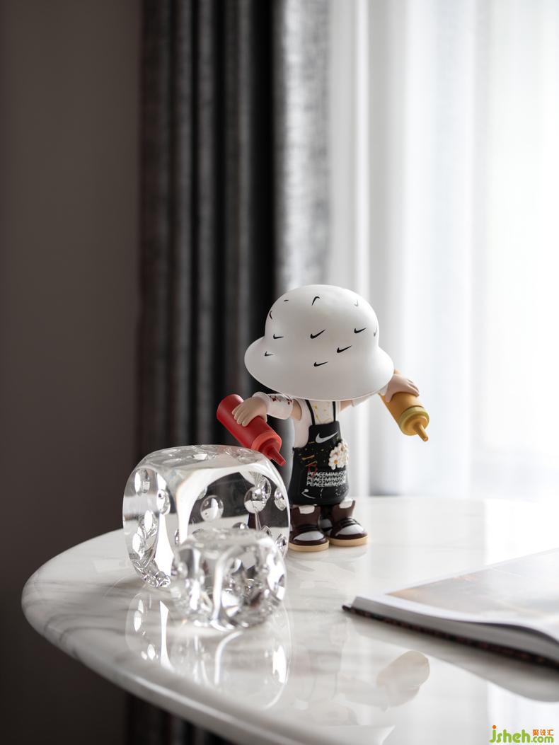 遠離塵囂的靜謐之地,也需要細節(jié)上的剛?cè)岵?。流動的銀色、造型別致的潮玩,是造型藝術(shù)與潮流藝術(shù)的默契合作。