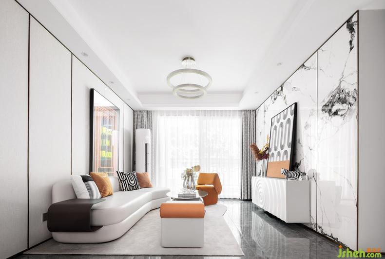 整體空間以靜謐淺色調(diào)主色調(diào),配以優(yōu)雅和諧的橘黃色,加以金屬色點綴;樣板房設(shè)計個性和時尚傳達至每一處,讓空間有著多維藝術(shù)視角的生活感觸。