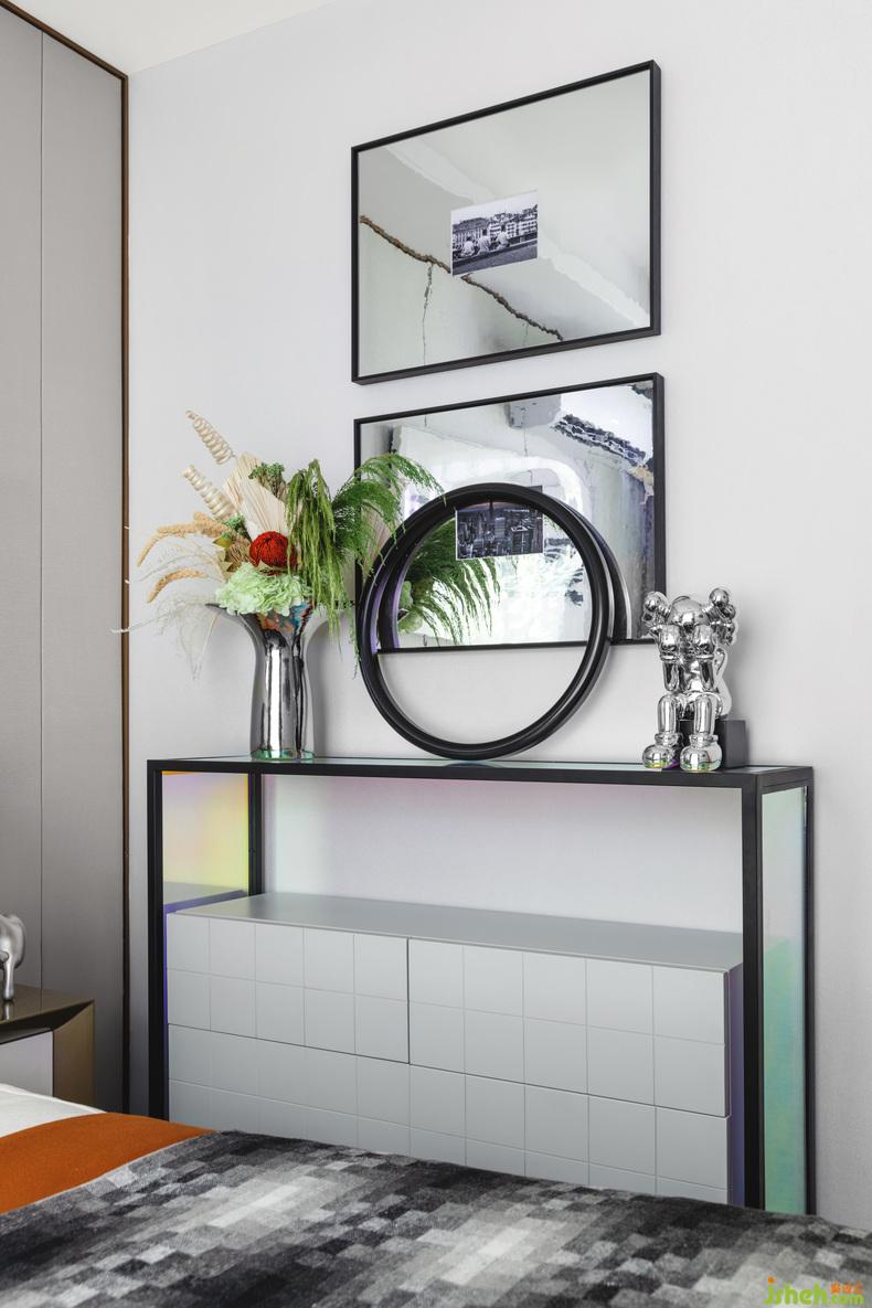 將KAWS和哈哈鏡一起點綴整個空間,表達自我追求品質生活以及活力四射的處世態(tài)度。