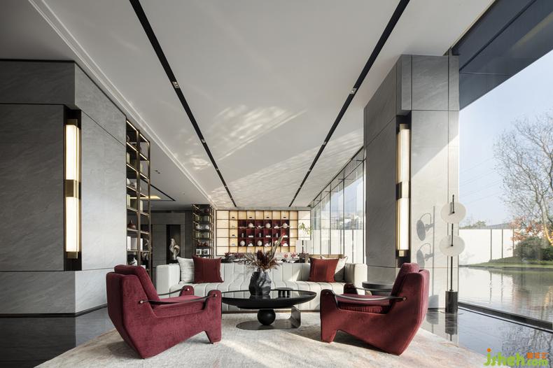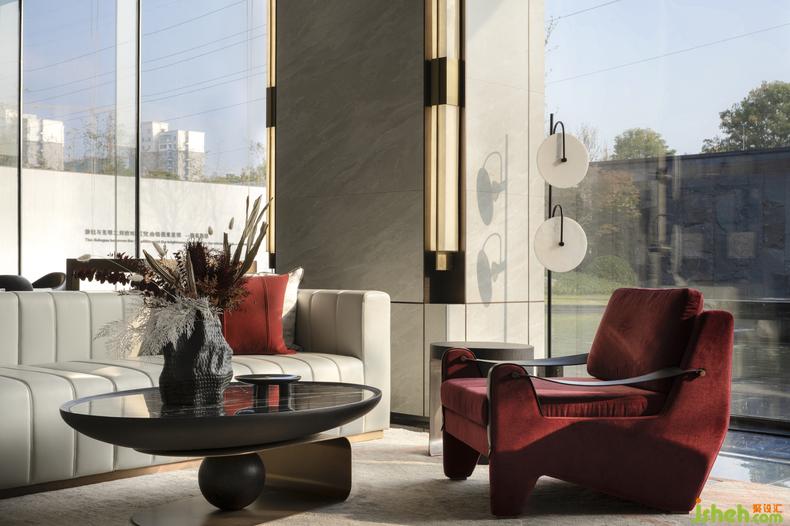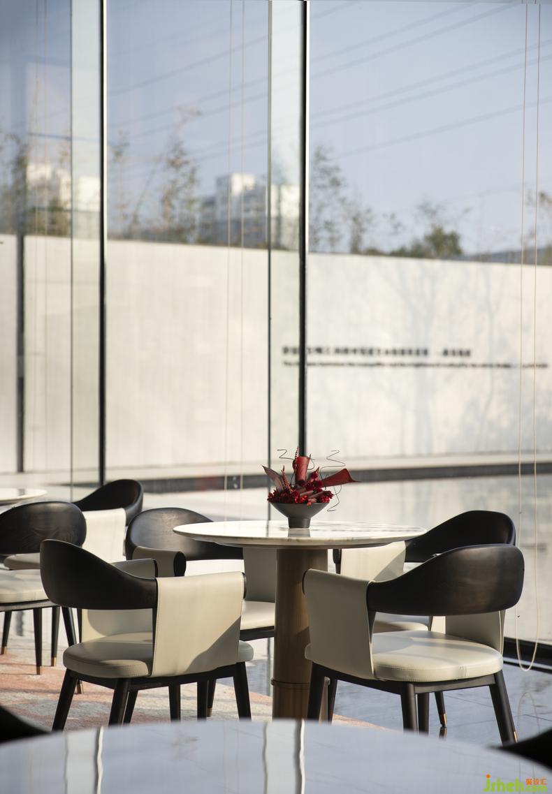 “納自然之形,建空間之意”是極其重要的東方美學(xué)思想。洽談區(qū)充分利用自然,售樓處設(shè)計用大面積的落地玻璃窗將自然和光影結(jié)于一庭,室外之景納入眼簾。窗外的庭院與樹和室內(nèi)沙盤區(qū)相映成趣,東方古韻與現(xiàn)代展望融匯一體,傳遞著美好人居的理念。