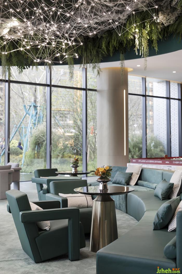 整體以木色為主基調(diào),搭配生機(jī)勃勃的翠綠喚醒空間,售樓處設(shè)計(jì)與淡雅的灰綠色家具相互呼應(yīng),在有限的空間里,形成自然與人居空間的滲透循環(huán),營(yíng)造輕松舒適的洽談氛圍。