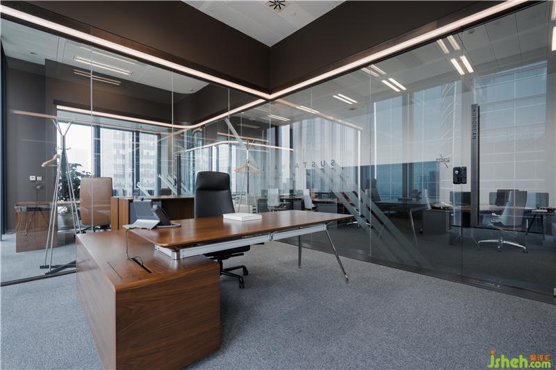 為了強(qiáng)調(diào)綠色、現(xiàn)代化的氛圍,設(shè)計師盡力去掉棱角分明的邊界和比較硬朗的造型,將體現(xiàn)生命親和力的木元素應(yīng)用于各個辦公區(qū)域,以簡約的設(shè)計語言,完美契合了新能源公司的現(xiàn)代感與科技感。豐富的玻璃隔斷形成通透的空間,相互貫穿,模糊了空間屬性,從而削弱小空間帶來的局促感。既保障了空間的私密性,又讓整個環(huán)境更加清新自然。