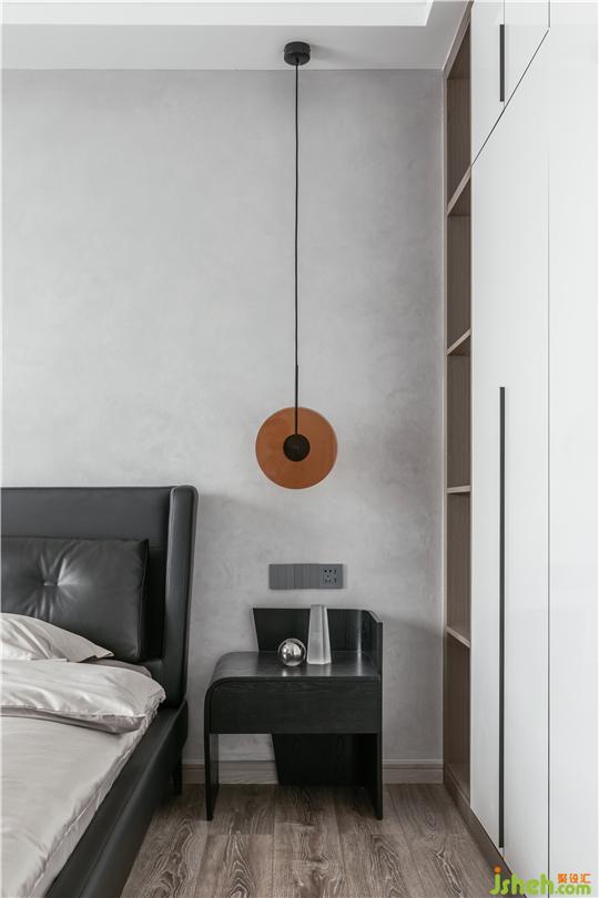 一邊吊燈一邊臺燈,通過色形的變化與揉合傳達(dá)出臥室的和諧溫馨。