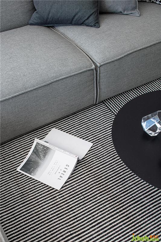 客廳的中心區(qū)域,通過(guò)多人沙發(fā)配合邊幾、地毯打造舒適的空間氛圍,在結(jié)構(gòu)上,巧妙地將矩形的方正和局限轉(zhuǎn)變?yōu)閮?yōu)勢(shì),打通陽(yáng)臺(tái)區(qū)增加公共區(qū)的開(kāi)闊和流動(dòng),在此基礎(chǔ)上做了臨窗的地臺(tái),因?yàn)橹魅说纳钇梦覀優(yōu)樗峁┝艘粋€(gè)喝茶獨(dú)處的空間,這個(gè)區(qū)域我們希望在滿(mǎn)足生活功能的基礎(chǔ)上同時(shí)呈現(xiàn)出美感,所以地臺(tái)和墻面統(tǒng)一材質(zhì),木質(zhì)加入到空間的黑白色調(diào)里,營(yíng)造質(zhì)感之美。