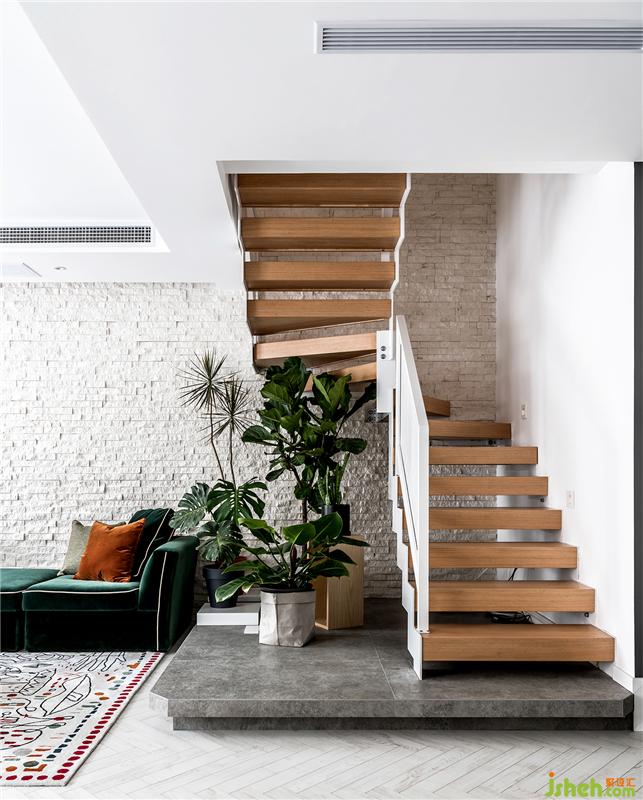 原木的樓梯懸空而上