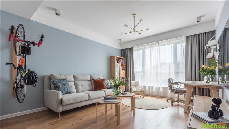 客廳還放置了一個(gè)山地自行車,是爸爸的愛好,他說希望以后有機(jī)會(huì),可以和孩子一起去野外騎行。這里擴(kuò)大所有可利用的空間,原本的陽光區(qū)被納入客廳變成一個(gè)供孩子閱讀和大人工作的親子互動(dòng)區(qū)。