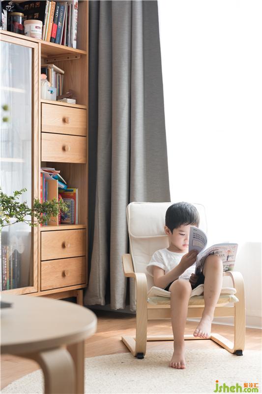 無論是沙發(fā)還是閱讀區(qū),特別的兒童座椅,都是出于小業(yè)主有閱讀繪本和學(xué)字的需求來考慮,旁邊立著大大的書柜,放下了爸爸各類的專業(yè)書和孩子的繪本。