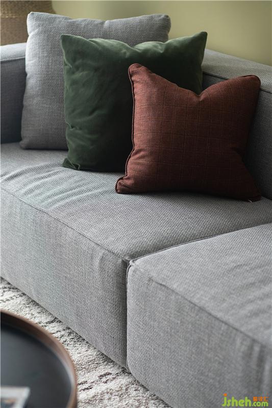 電視背景墻采用大面積的復(fù)古綠同時(shí),也用規(guī)律的豎形線條帶來獨(dú)特的處理。這個(gè)角落,造型優(yōu)美的器皿,活潑的跳色,瞬間點(diǎn)亮整個(gè)空間。