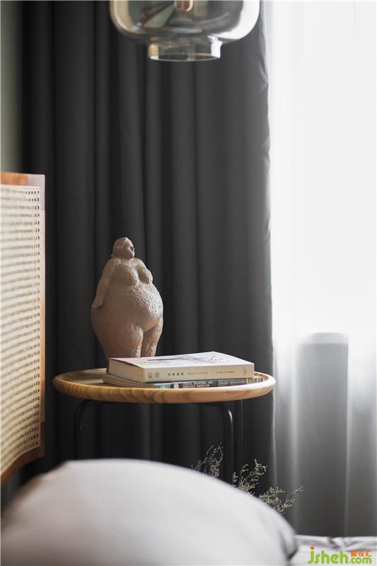延續(xù)一貫的復古元素,床頭的陳設、擺件都是仔細挑選過的小精品。每一個細微的生活場景,都值得被用心設計。