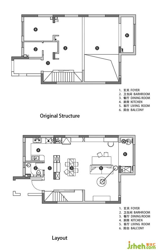 原始入戶是一條狹長的通道,左邊是樓梯,右邊是洗手間,無玄關(guān)的情況下,視覺上和使用都非常局促,設(shè)計師將洗手間原始干區(qū)取消,改造成為一個雙面使用的玄關(guān)隔斷,正面衣柜-鞋柜-座凳三者結(jié)合,完全滿足進門換鞋收衣服的需求,還有一面玄關(guān)鏡,整理儀容,非常好用。