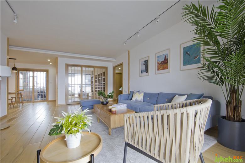 客廳空間方正空間大,布局上大方處理就好了,空間上主要注重軟裝的搭配和顏色的層次。白色墻面在桑拿板木條點(diǎn)綴下有一點(diǎn)靈動(dòng)的色塊的,讓空間變的有趣味了。