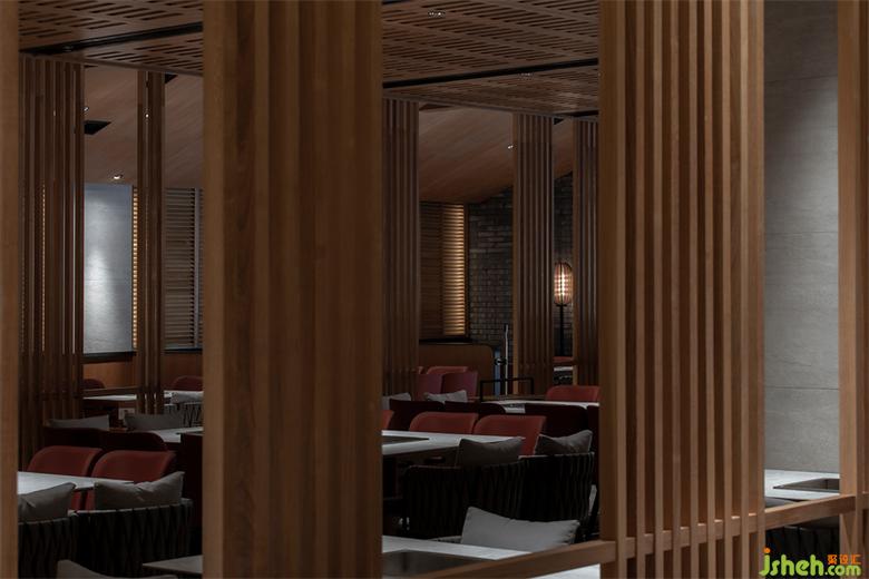 錦城印象成都餐廳設(shè)計(jì)高新店,是集嘉設(shè)計(jì)受委托進(jìn)行品牌升級改造的第二家錦城印象門店。項(xiàng)目毗鄰高新區(qū)in99商業(yè)綜合體,是錦城印象品牌每日營業(yè)額冠軍門店,面積最小、上客率最高。在保證業(yè)態(tài)和高頻效翻臺率的同時,成都餐廳設(shè)計(jì)師利用園林景觀的設(shè)計(jì)邏輯--「空間越拆越小,空間越隔越大」,在大廳兩側(cè)設(shè)置了木柵隔斷,擴(kuò)大空間視覺效果。