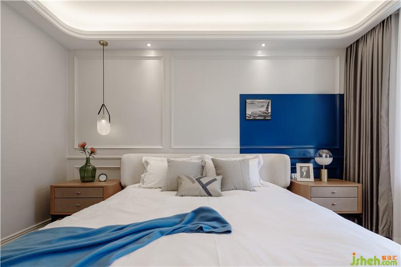 主臥背景,由簡(jiǎn)單的線條方框而構(gòu)成,只需把握好比例,加入不一樣的藍(lán)色基調(diào),便能起到畫龍點(diǎn)睛的作用。原皮家具釋放出低調(diào)的溫暖,浸潤(rùn)著這個(gè)空間…
